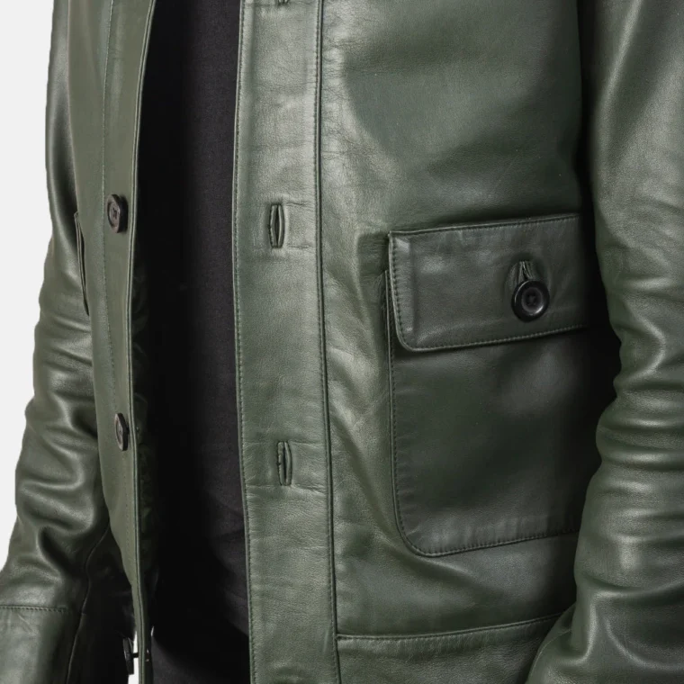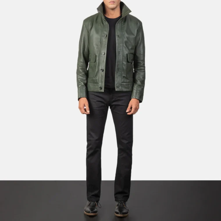 The Men’s Columbus Green Leather Bomber Jacket offers a fresh take on traditional leather outerwear. Its rich, deep green color and smooth genuine leather construction create a sophisticated look that is both striking and versatile. The jacket’s classic bomber silhouette is enhanced by a button-down front and functional flap pockets, providing a unique blend of heritage military style and modern-day fashion. It’s the perfect statement piece to elevate your casual or semi-formal wardrobe.