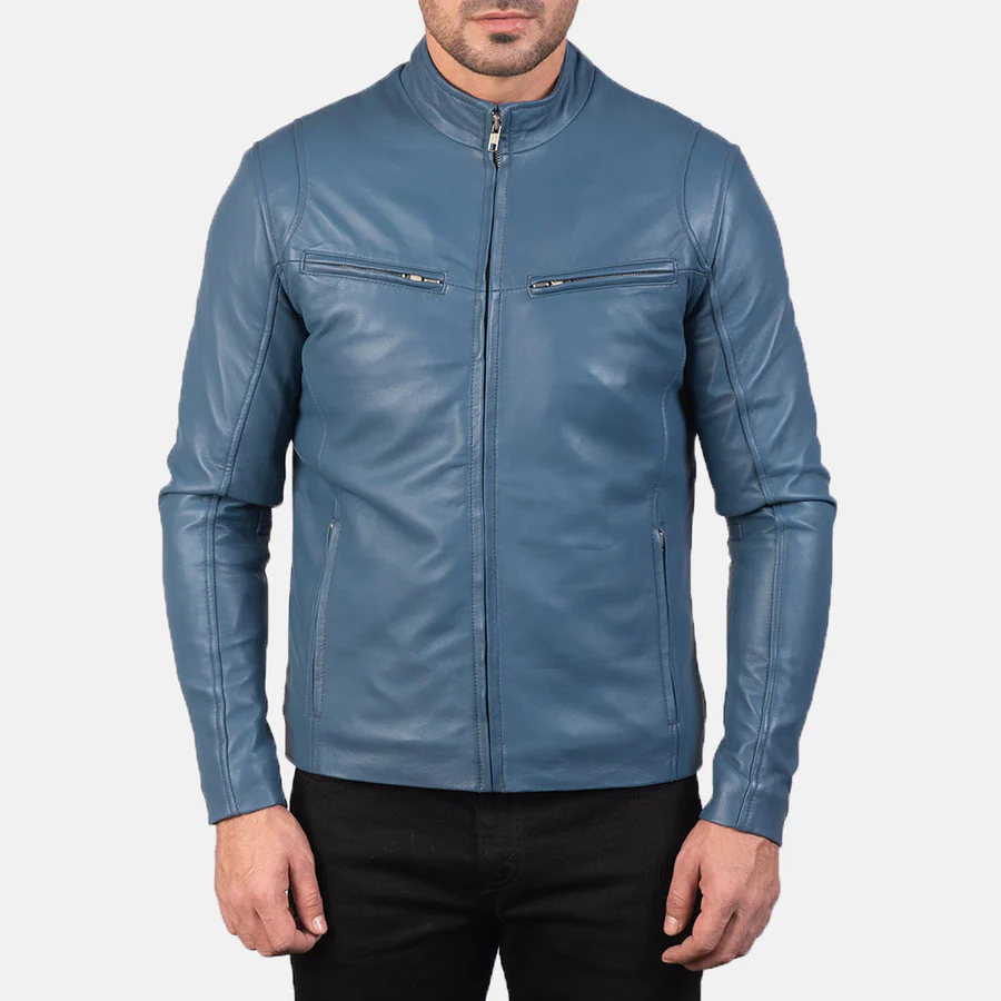 Step up your style game with this Men’s Ionic Blue Leather Biker Jacket. Its vibrant blue hue offers a fresh and unique take on the classic leather jacket, ensuring you stand out from the crowd. Crafted from genuine leather, the jacket’s sleek, cafe racer-inspired design is clean and confident. With its smooth front zipper and minimalist details, it’s the perfect piece for adding a dose of personality to your casual or street-smart look.